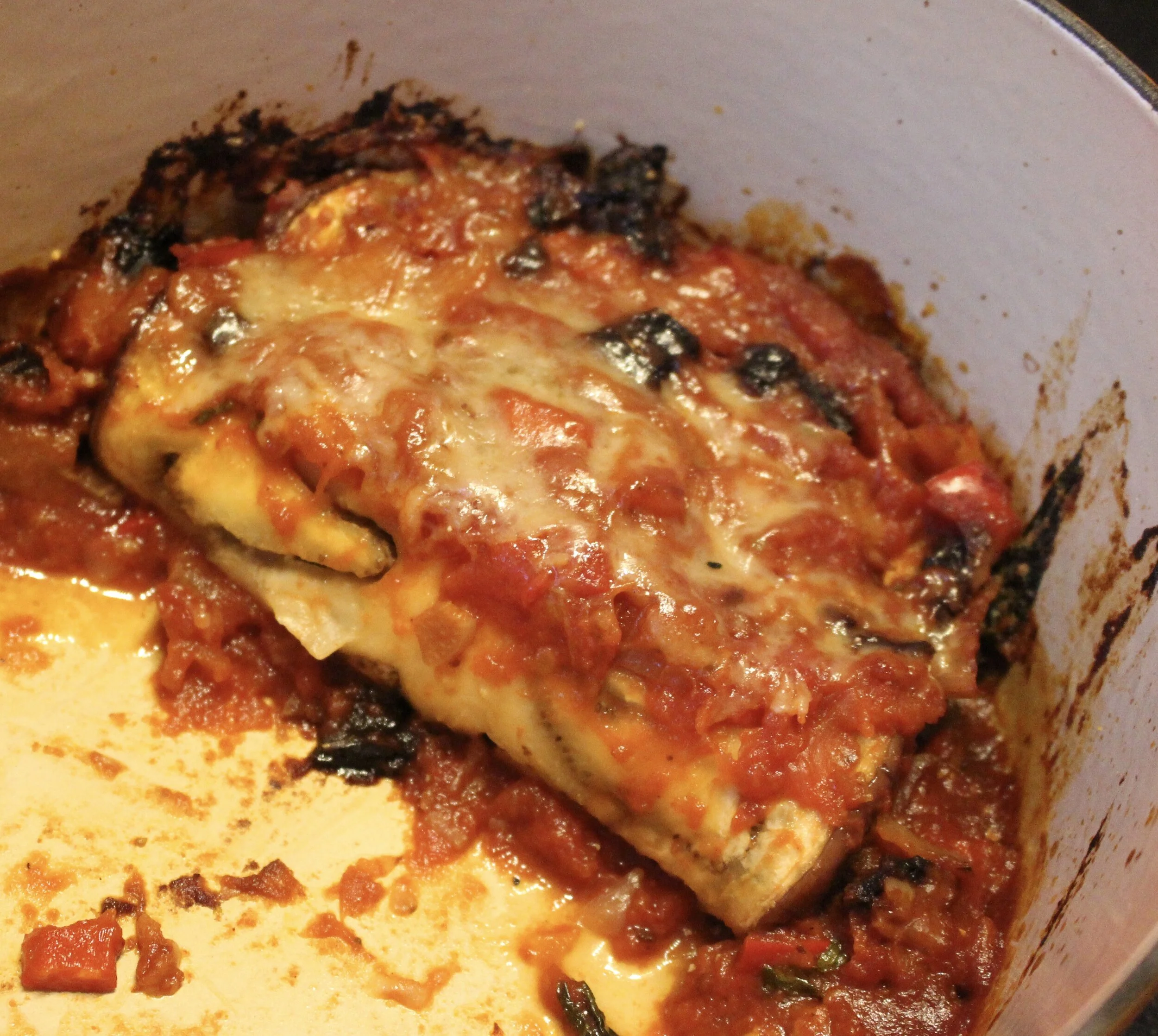 Aubergine, love it or hate it but you can’t deny its versatility. Simply slice and bake quickly as a healthier alternative to frying. Aubergines are very porous and can drink up their weight in oil. Once softened, the slices are filled with a zesty, punchy spinach and ricotta mix, rolled then covered with a simple tomato sauce and a layer of cheese. This is comfort food but without compromising on your health.